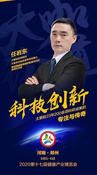太爱肽医学顾问、中医学及临床营养学双博士美国慢病管理国际联盟亚洲区首席科学家任岩东先生,在博览会期间的论坛上,作了题为《科技创新—太爱肽23年200余项科研成果的专注与传奇》 的精彩演讲,更引发了业内参会大咖的思考与共鸣。