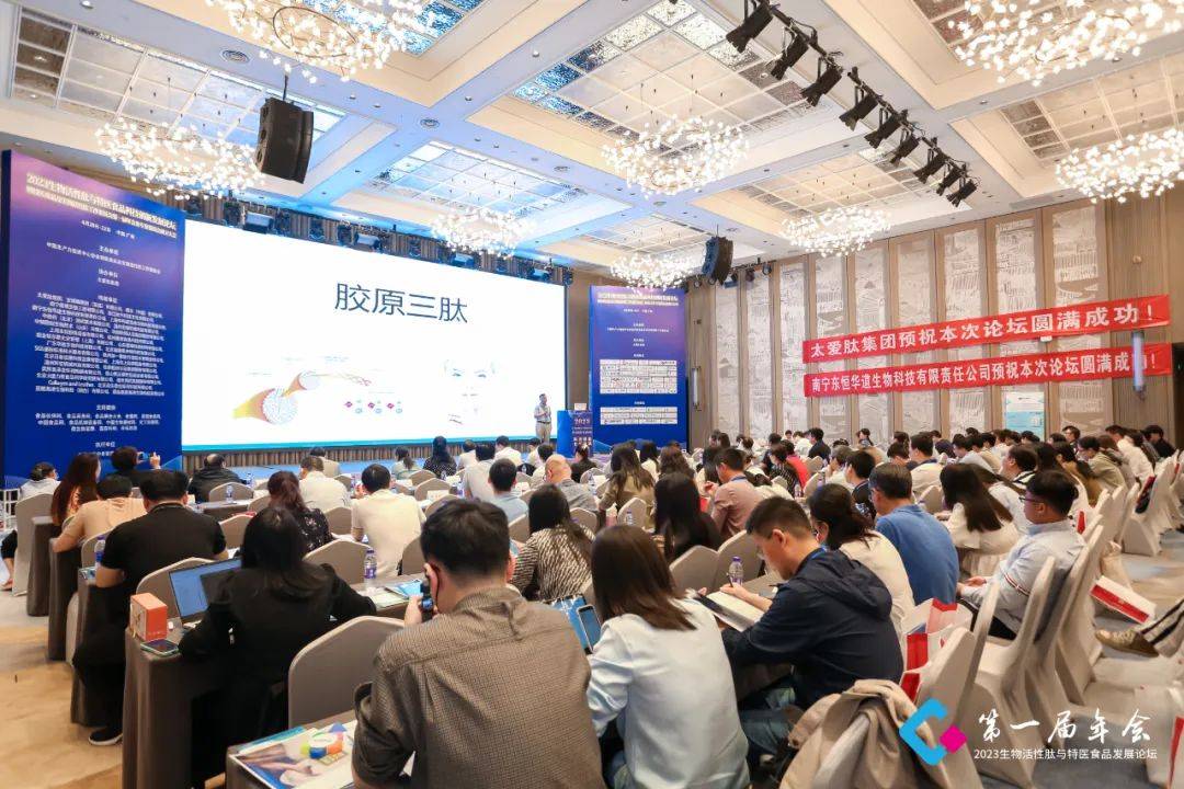 为进一步解决生物活性肽和特医食品产业技术创新的关键问题,开展技术合作,加速科技成果的转移转化,提升产业整体竞争力,为行业持续创新提供人才支撑,2023年4月20日—22日在广州市成功举办了“2023生物活性肽与特医食品科技创新发展论坛”暨“特医食品及生物活性肽工作委员会第一届年会及专家委员会成立大会”,太爱肽集团作为副主任委员单位、副理事长单位受邀出席了此次论坛。会议邀请国家相关部门领导及行业知名专家学者、优秀企业代表到会演讲,并进行专题交流。