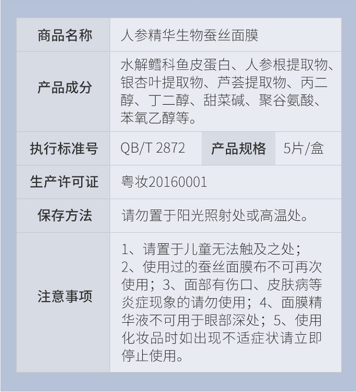 肽品氏人参精华生物蚕丝面膜