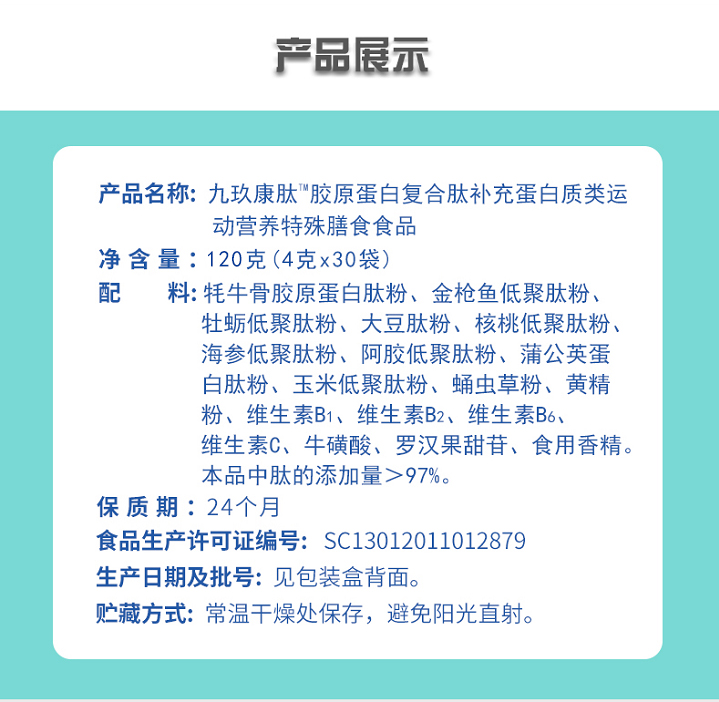 太爱肽 九玖康肽 胶原蛋白复合肽 特殊膳食