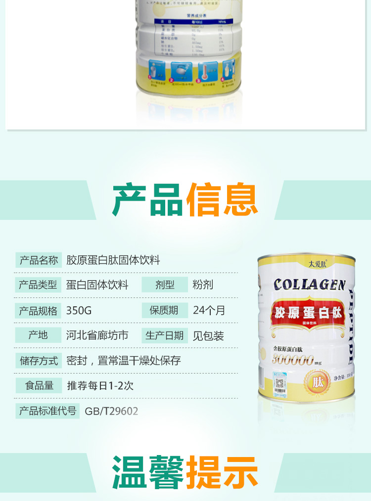 | 中文名称 | 太爱肽胶原蛋白肽固体饮料350g |